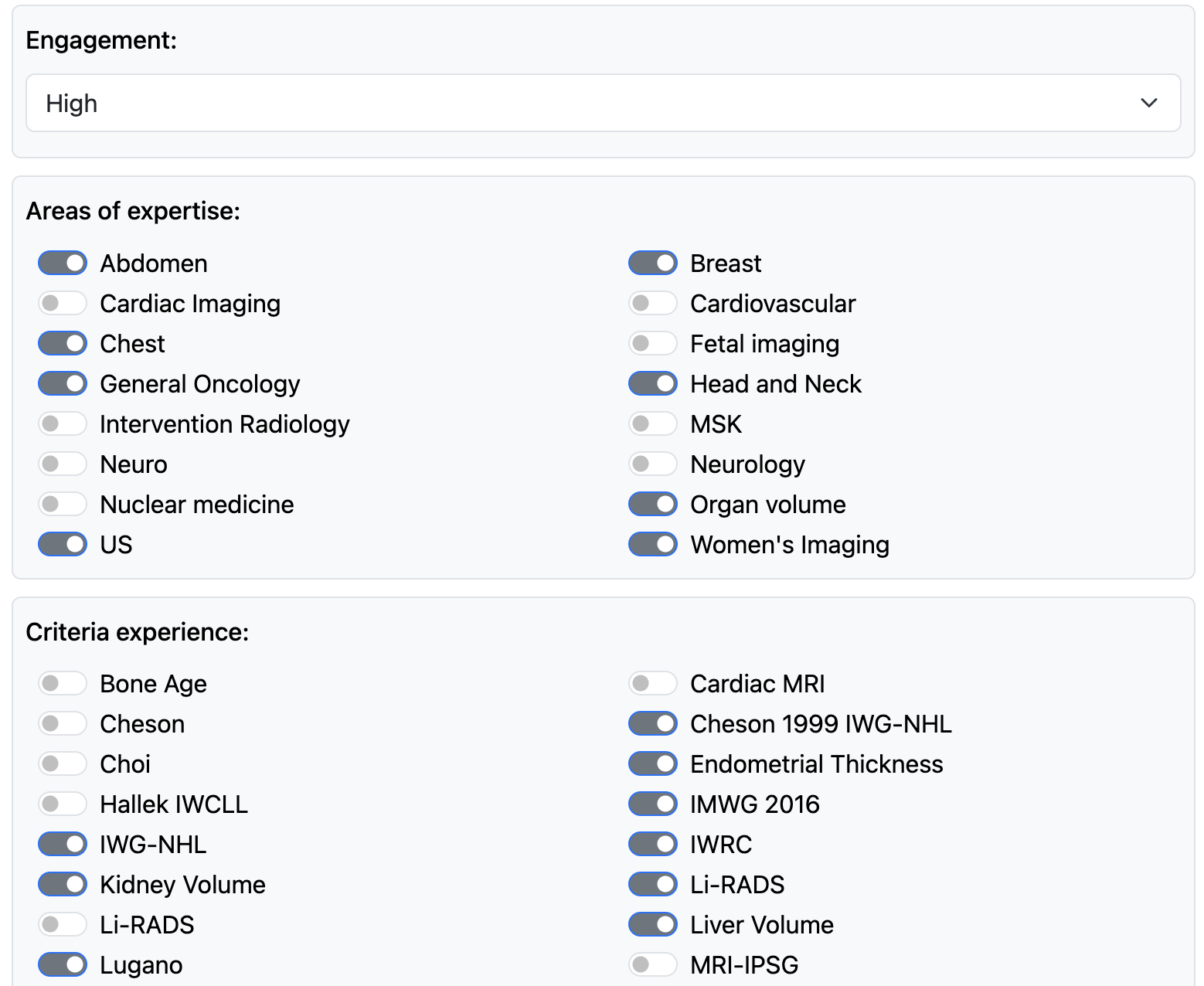 They have extensive experience in clinical trials, using various criteria such as RECIST, iRECIST, mRECIST, LUGANO, RANO, IWG-NHL, IWCLL, and PCWG.