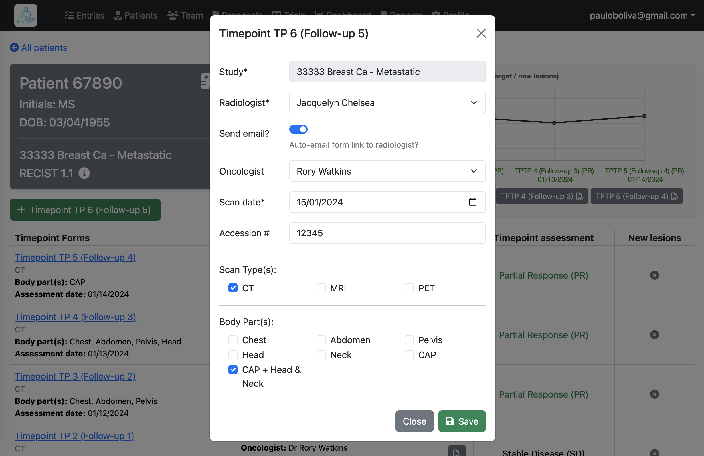 - Paciente identificado no centro de câncer e adicionado ao portal Scientia