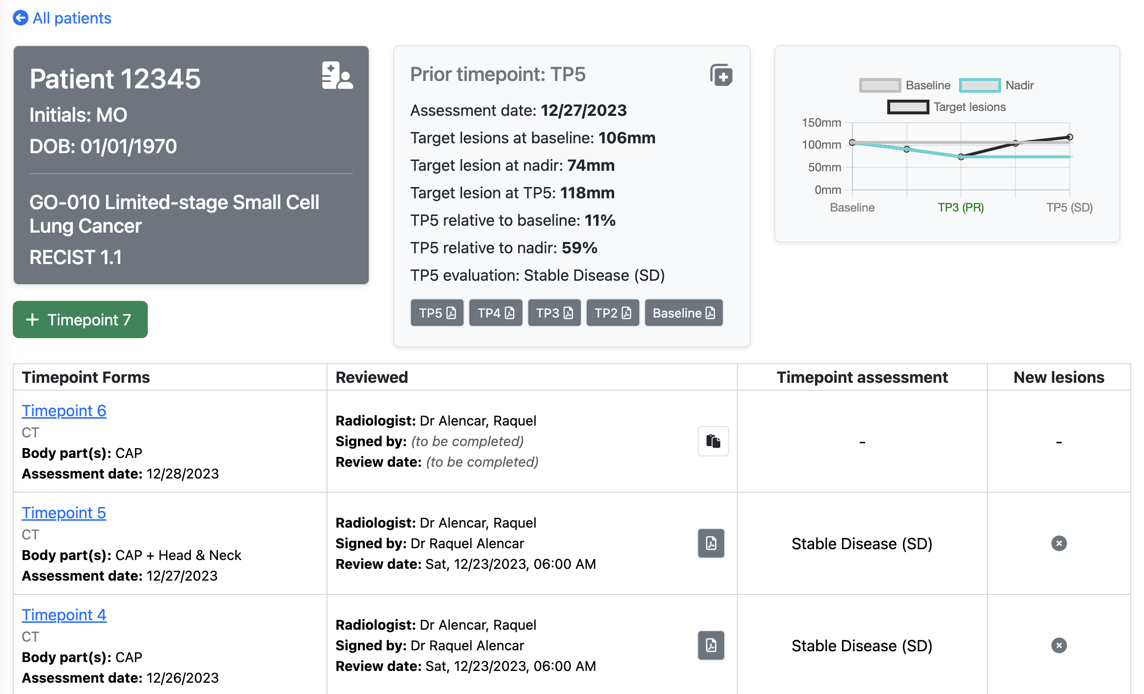 - Radiologia revisa as imagens e preenche o formulário eletrônico de relatório de caso (eCRF)